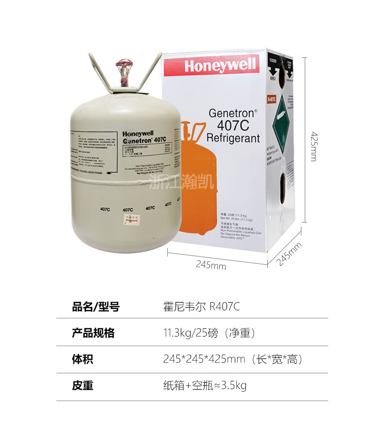 霍尼韋爾R407C制冷劑,別名R-407C,商品為Genetron 407C、Honeywell R-407C等。由于霍尼韋爾R-407C屬于HFC型非共沸環(huán)保制冷劑(完全不含破壞臭氧層的CFC、HCFC),得到目前絕大多數(shù)國家的認可并推薦的中高溫環(huán)保制冷劑,廣泛用于新冷凍設(shè)備上的初裝和維修過程中的再添加。符合美國環(huán)保組織EPA、SNAP和UL的標準,符合美國采暖、制冷空調(diào)工程師協(xié)會(ASHRAE)的A1安全等級類別(對人身體無害)。